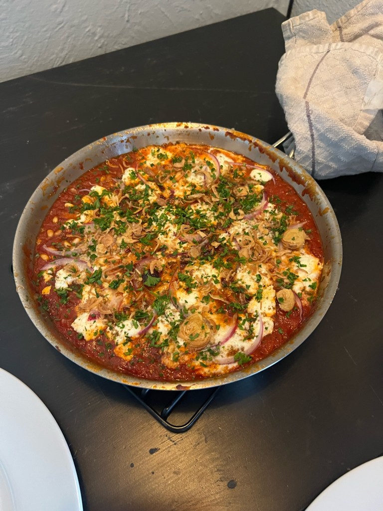 Warm, filling, savory, bright, herbal. The specialness of the dish is partially the taste and partially the community built around a piping hot shared breakfast feel intimate and overdue. I usually save this for quiet and slow Sundays at home with my partner, but that is not a reflection of it’s difficulty or scalability.